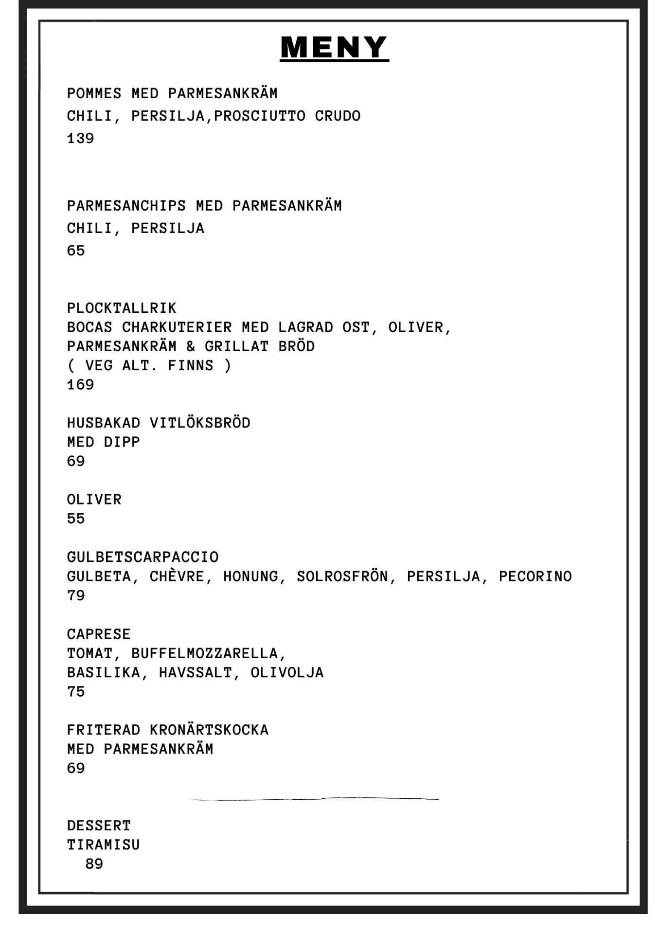 MENY / TAKE AWAY